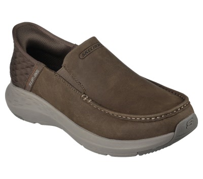 Step into easy-wearing comfort and classic style with Skechers Hands Free Slip-ins® Relaxed Fit®: Parson - Oswin. Designed with an exclusive Heel Pillow™, this laceless fit moc toe style features a Skechers Slip-ins® molded heel panel, leather upper, Skechers Air-Cooled Memory Foam® insole, and Goga Mat Arch™ cushioning for added support
